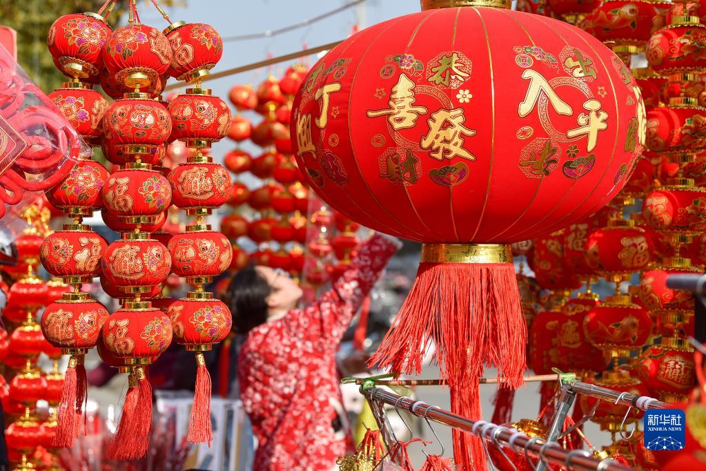 1月19日,江蘇省如皋市白蒲鎮(zhèn)居民在選購(gòu)春節(jié)飾品。新華社發(fā)(方東旭 攝)